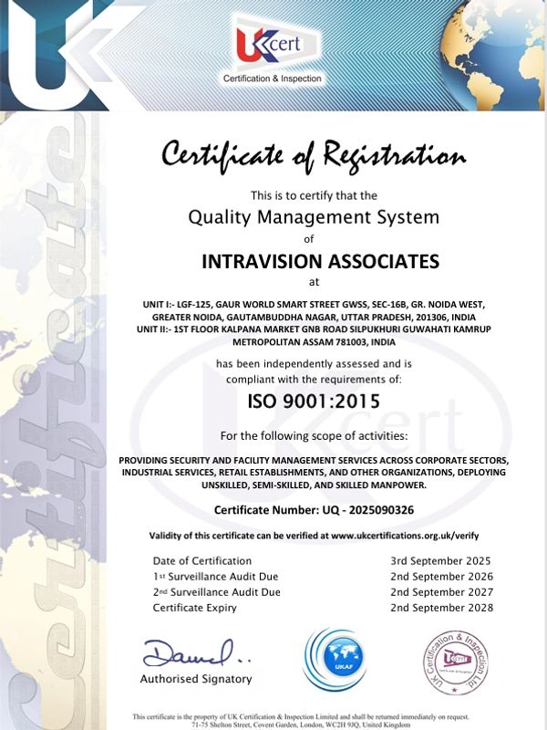 At IntraVision Associates, quality is our priority. We are an ISO 9001:2015 Certified Company a globally recognized standard for Quality Management Systems (QMS)